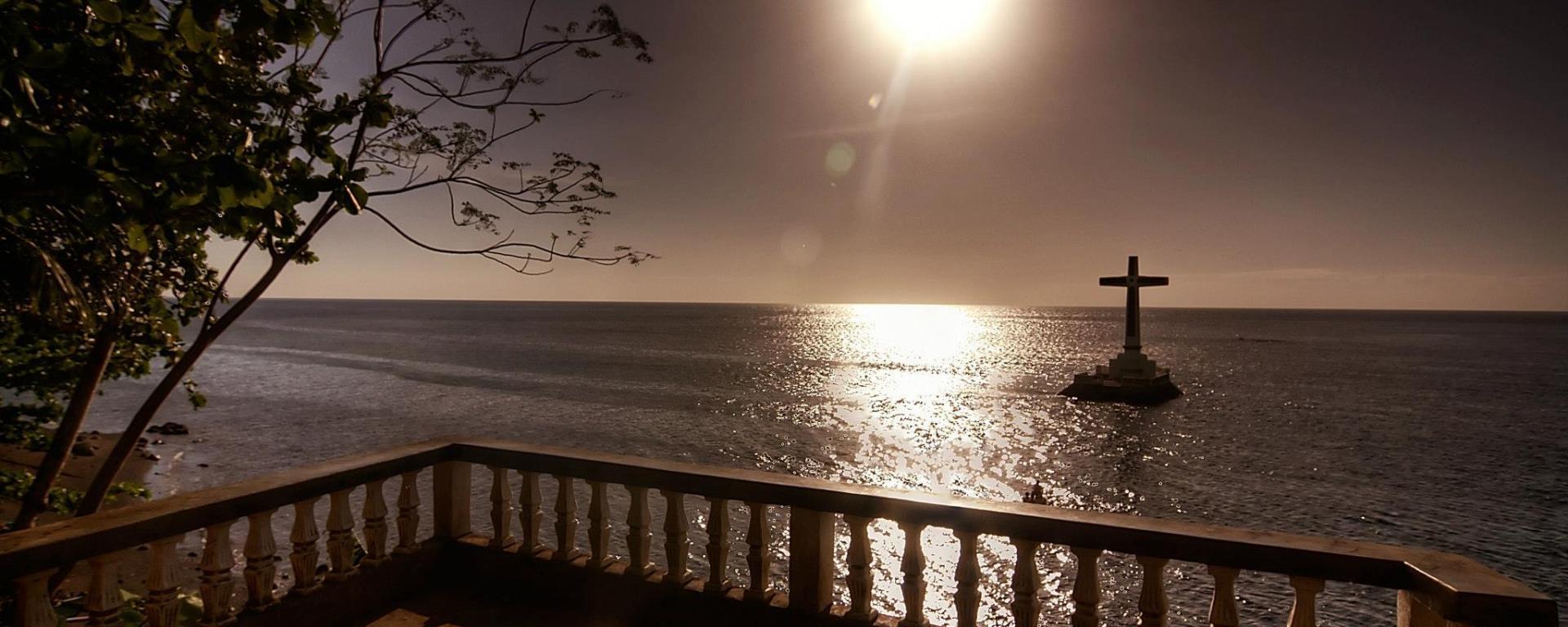 The Sunken Cemetery in the town of Catarman, in the island of Camiguin, now marked by a cross standing in the middle of the sea. Out of the 7, 107 islands of the Philippines, Camiguin is the second smallest island of the country both in area and population, situated in Northern Mindanao Region. The island is surrounded with volcanoes, (four young volcanoes, “stratovolcanoes” overlying older volcanic structures). These include Mount. Hibok-hibok and Mt. Vulcan, and still considered active. When Mt. Vulcan started as a volcanic fissure in 1871, after weeks of earthquakes and non-stop discharge of lava, it left the town of Catarman submerged and pushed below the sea, including the capitol’s cemetery, leaving behind the ruins of an ancient Spanish San Roque church and its bell tower. The remnants and gravestones of the cemetery were still visible during low tide until 1948 when Mount Vulcan erupted again for the fourth time and sunken the area deeper, In 1982, a huge cross was built to mark its old gravesite. Come and discover the island of Camiguin, learn the history and story for yourself, and be mesmerized with its beauty and pristine beaches.