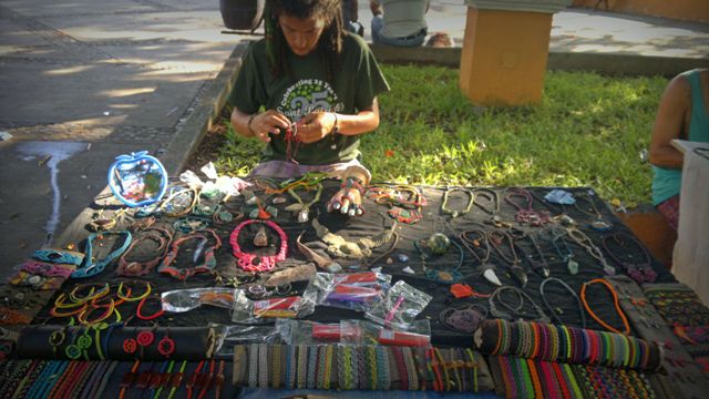 It is not the first time that I approached and talked to those people in the street with interesting hairdo and get up “a la Bob Marley”, making intricate hand-made bracelets, necklaces, rings, and sell them to people passing by. With their improvised table, their finished products are definitely an eye candy and attract people.